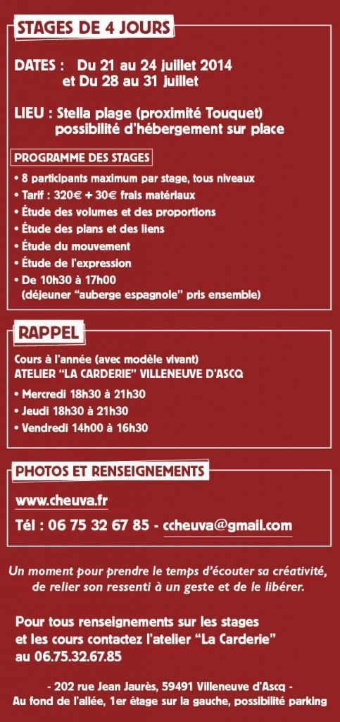 Je vous propose un stage d’été qui se déroulera du 21 au 24 juillet et du 28 au 31 juillet à Stella plage (cote d’opale).